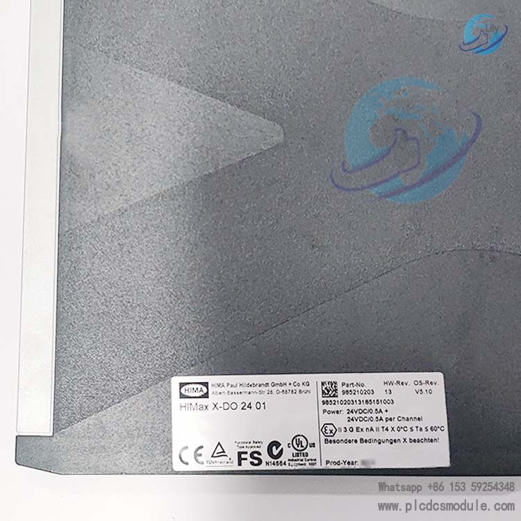 The HIMax X-DO2401 is a digital output module launched by HIMA, exclusively designed for the HIMax Programmable Electronic System (PES). Primarily intended for the construction of safety-related controller systems, it features high safety, high reliability and flexible configurability, and is TÜV certified. This module meets the safety level requirements of SIL 3 (in accordance with IEC 61508, IEC 61511 and IEC 62061), Cat. 4 (in accordance with EN 954-1) and PL e (in accordance with EN ISO 13849-1), making it widely applicable to industrial automation scenarios with stringent safety performance requirements.