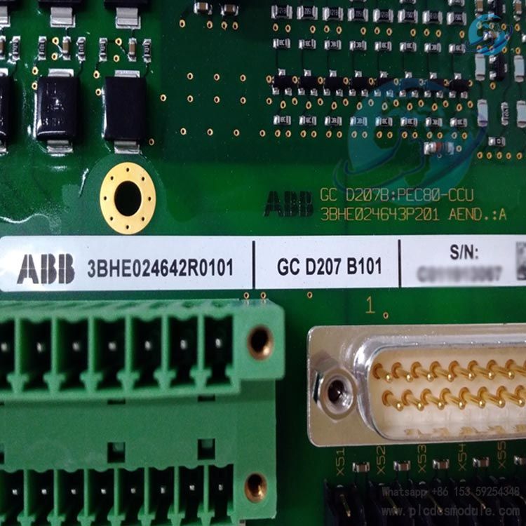 GCD207B101 3BHE024642R0101 is a high-performance inverter module belonging to ABB Large Industrial Drives product family, specifically designed for medium and high-voltage industrial drive systems, mainly compatible with ABB ACS 6000 and ACS 880 medium and high-voltage frequency converter platforms, and primarily used for speed regulation and energy conversion of AC motors; as the "power core" of the frequency converter, this module converts direct current (DC) into alternating current (AC) with adjustable frequency and voltage through IGBT (Insulated Gate Bipolar Transistor) power devices, which enables precise speed control of medium and high-voltage motors (3.3 kV~10 kV) while also featuring functions such as energy feedback, overload protection, and harmonic suppression, and its design complies with the IEC 61800-5-1 medium and high-voltage drive standard, adopting modular power units, multi-layer heat dissipation structures, and high-voltage isolation technology to operate stably in industrial environments with temperatures ranging from -10℃ to +50℃, under strong electromagnetic interference (such as arcs in high-voltage cabinets), and in high-dust scenarios, thus being widely used in industries such as power, metallurgy, and mining that require high-power motor speed regulation; compared with ordinary low-voltage inverter modules, GCD207B101 has high power density and direct adaptation capability for medium and high voltages, with the rated power of a single module ranging from 100 kVA to 500 kVA, and it can be connected to medium and high-voltage motor systems without an additional step-up transformer, which significantly simplifies the drive system architecture and reduces equipment footprint and energy consumption.