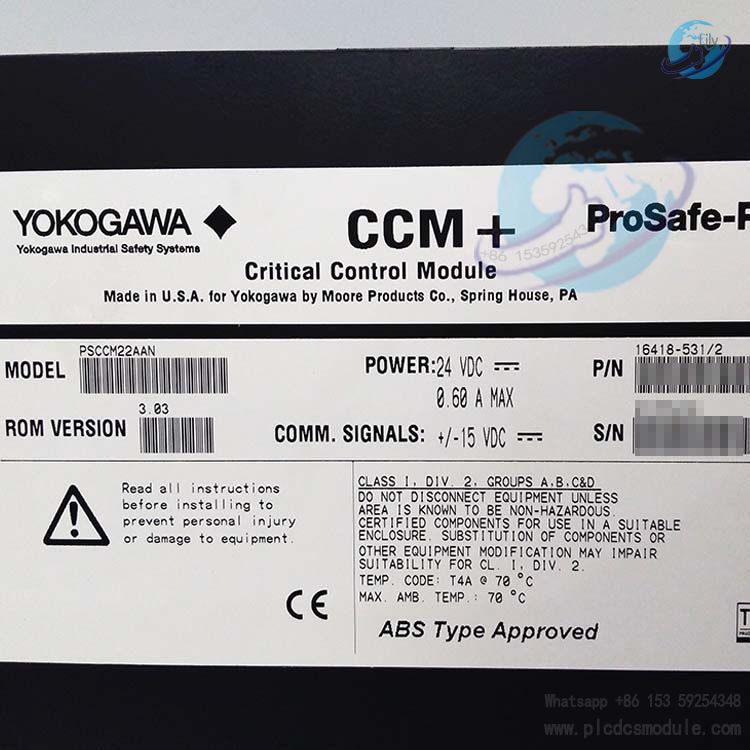 critical control module (CCM) of the Yokogawa ProSafe-RS Safety Control System, with the material code 16418-5312. Its core function is to provide key loop control capability that complies with the SIL 3 requirements of the IEC 61508 standard for Safety Instrumented Systems (SIS) in process industries such as petrochemicals, oil & gas, and electric power.
