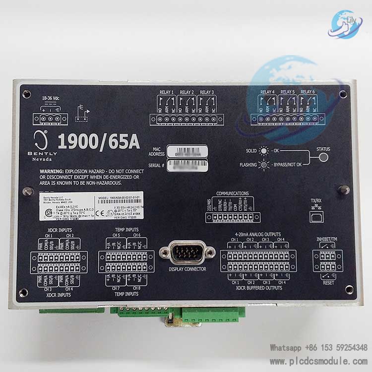 Note; All products on this site are special products, the market price has been fluctuating, the specific customer service offer shall prevail, because the product is a new product, the picture is not a real shot, please confirm with customer service before placing an order model and product, price and other details, the site used, new are for sale, please contact customer service communication. The Bently Nevada 1900/65A-00-02-01-01 Universal Machinery Monitor is a continuous monitoring and protection device designed for equipment across multiple industries and scenarios. Boasting high cost-effectiveness, it serves as an ideal solution for general machinery and processes requiring continuous monitoring and protection. Following standardized parameter configuration (per the 1900/65A-AA-BB-CC-DD-EE coding rule: AA=00 for 18-36Vdc power supply, BB=02 for a display with 10-foot preassembled PVC cable, CC=01 for specific mounting adaptation, DD=01 for multiple certifications, and EE=01 for Modbus communication), this model enables real-time monitoring of key equipment parameters such as vibration, temperature, rotational speed, and displacement. It also supports flexible communication interaction, remote configuration, and alarm control, making it widely applicable in industrial equipment condition monitoring, fault early warning, and safety protection scenarios.