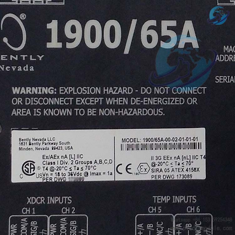 1900/65C (General Purpose Equipment Monitor): It retains the 4+4 channel input configuration of the 1900/65A model, upgrades the explosion-proof rating to ATEX II 2 G Ex d IIC T6, and expands the operating temperature range to -40℃~+85℃. Specifically designed for Class I Div 1 high-risk areas such as petrochemical and coal mining industries, it is suitable for equipment monitoring in extreme environments like underground fans and compressors in refining and chemical installations.