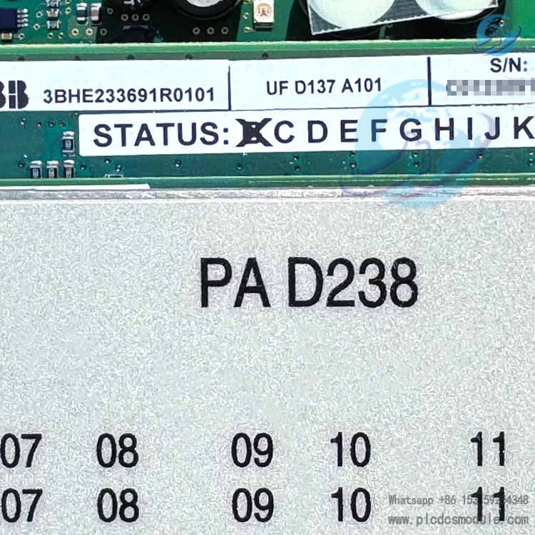 ABB PA D238 3BHE233691R0101 + 3BHE014658R0103 is a high-performance relay digital output module designed by ABB specifically for industrial traction control systems and complex automation applications.It belongs to the PEC INT / PA D238 A101 series of PEC interface boards, with electrical designations covering A501 to A503.As a key execution component of the traction I/O interface, it connects the FPGA control unit with field actuators to achieve reliable digital output and command transmission.Featuring a modular design, high anti-interference capability and stable relay driving performance, it is widely used in harsh industrial environments such as traction systems and industrial automation control.Together with the traction I/O interface (including analog inputs, optical module communication and FPGA control) as provided, it forms a complete closed loop of signal acquisition, control and output, ensuring efficient and coordinated operation of the system.