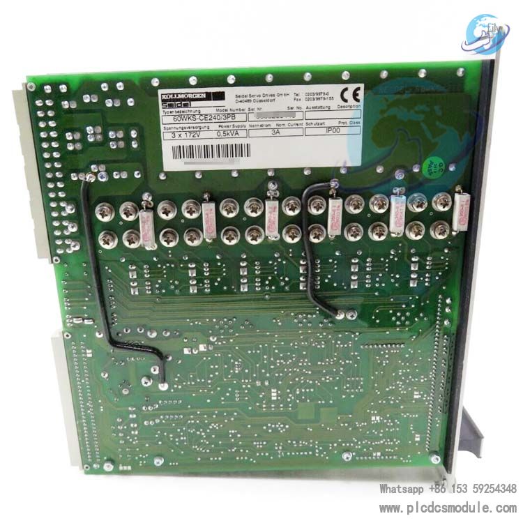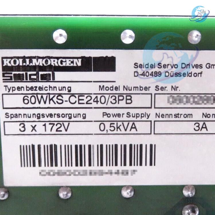 60WKS‑CE240/3PB is a low-power analog servo amplifier manufactured by Kollmorgen Seidel. It is specifically designed to drive SM series brushless synchronous servo motors. Powered by a three-phase isolation transformer with a 240V DC bus, the unit integrates a braking circuit, comprehensive protection functions, and status monitoring. It is suitable for 19-inch rack mounting or installation in compact cabinets, and meets the requirements for high-precision speed/torque control and four-quadrant operation, serving as the core drive unit for classic analog servo systems.
