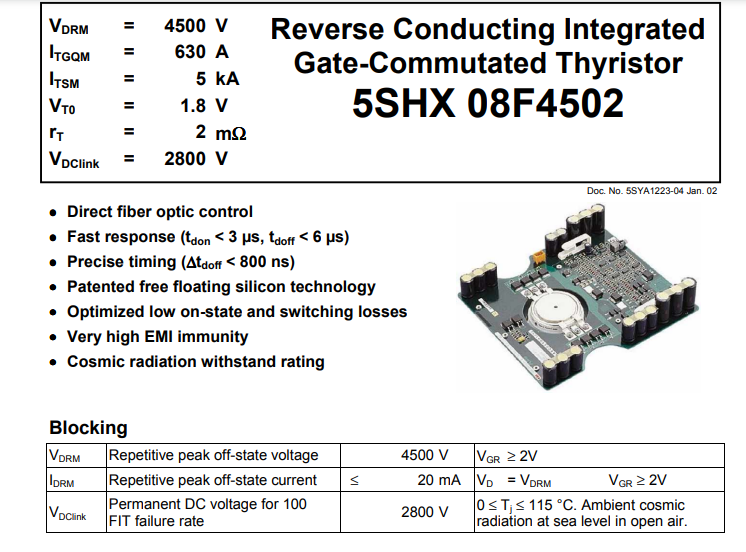 ABB 5SHX08F4502 3BHB003387R0101 Reverse Conducting Gate-Commutated Thyristor