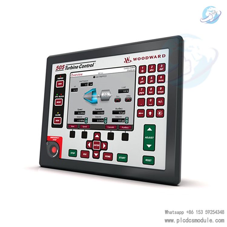 The Woodward 505D Digital Governor Turbine control product 8200-1302 is part of the Woodward 505 Digital Governor series designed for turbine control. The 8200-1302 is an integrated graphical front panel HMI(Human Machine Interface) featuring an operator control panel as a graphical interface and keyboard for regulation and communication with the turbine.